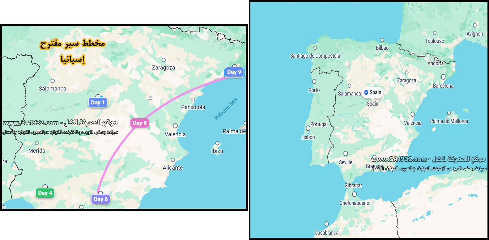 نهاية مخطط سير مقترح الى أسبانيا والاستعداد في اليوم التالي لمغادرة أسبانيا