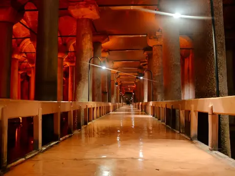 يقع صهريج البازيليك بجوار متحف آيا صوفيا، وقد بُني بأمر من الإمبراطور البيزنطي جستنيان. تبلغ سعته 80,000 متر مكعب من المياه، وكان بمثابة خزان جوفي استخدمته القصور البيزنطية والعثمانية، ولا يزال قيد الاستخدام حتى اليوم. يُعد صهريج البازيليك الآن معلمًا سياحيًا شهيرًا نظرًا لأهميته التاريخية وجماله المعماري. في ضوء صهريج البازيليك الخافت، تدعم أعمدة حجرية كورنثية سميكة أقبية ضخمة من الطوب محفورة بنقوش رائعة. أحيانًا، يمكنك حتى رؤية الأسماك تسبح. ونظرًا لجو الغموض الفريد هنا، فقد استُخدم كموقع تصوير لكل من فيلم جيمس بوند “سكاي فول” وفيلم جاكي شان “المدينة السرية”. (تحتاج الى تذاكر دخول ) أستفد من العروض والخصومات . من هنا