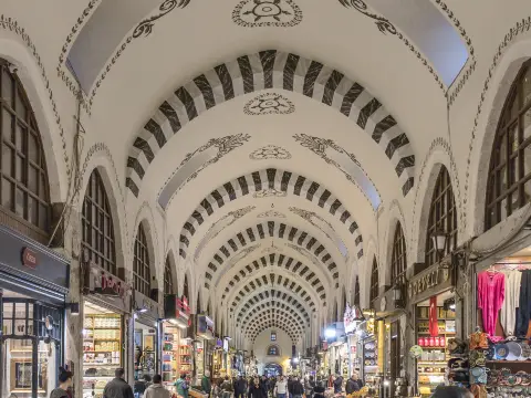 Egyptian Bazaar سوق التوابل، المعروف أيضًا بالسوق المصري، هو أكبر وأقدم سوق للتوابل في إسطنبول، بُني في ستينيات القرن السابع عشر. يُباع فيه اليوم، بالإضافة إلى تشكيلة واسعة من التوابل، تشكيلة واسعة من الهدايا التذكارية السياحية، وهو أرخص من البازار الكبير، لذا يُنصح بقضاء الوقت والشراء بعناية. يقع سوق التوابل والبهارات على الجانب الجنوبي من جسر غلاطة في القرن الذهبي، بجوار مسجد يني. وهو مبنى على شكل حرف L. يضم السوق مداخل ومخارج متعددة، ومئات المتاجر، ويمكن العثور على جميع أنواع التوابل التركية والمواد الطبية الطبيعية، وحتى الفلفل واليانسون والشمر والكمون، وغيرها، وهي مواد لا غنى عنها في المطابخ الصينية. بالإضافة إلى الفواكه المجففة وغيرها من الأطعمة، يُباع الفستق الحلبي الكبير والممتلئ، والفول السوداني، والمكسرات الأخرى، بالإضافة إلى الجبن والمربى ولحم الخنزير المقدد والحلويات والبندق المحمص ذي النكهة اللاذعة. سيُخرج العديد من أصحاب المتاجر المتحمسين حفنة من الأكياس الكبيرة ويسمحون للزوار بتذوقها مجانًا. عادةً ما تكون الفواكه المجففة أرخص قليلاً في سوق التوابل مقارنةً بالمراكز التجارية. بالإضافة إلى ذلك، تتوفر أنواع عديدة من الشاي، فبالإضافة إلى شاي التفاح الشائع، يوجد أيضًا شاي الليمون، وهناك أنواع مختلفة من الشاي، وهناك أنواع أخرى من الشاي المُخمّر. إذا لم تكن مهتمًا بالتوابل عند اختيار الهدايا التذكارية، يمكنك أيضًا شراء أكياس هدايا صغيرة للتوابل، بألوان زاهية وسعر مناسب، مما يجعلها خيارًا جيدًا لتقديمها كهدية. وبالطبع، تُعد مجموعة متنوعة من الحرف اليدوية والسلع السياحية مبهرة ومذهلة. (لا تحتاج تذاكر ) الموقع من هنا