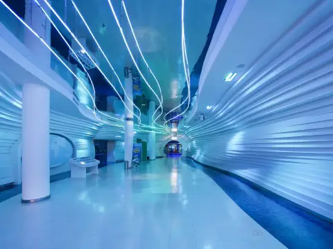 يضم الأكواريوم مناطق عرض متعددة، مقسمة حسب المناطق الجغرافية، تغطي 17 نظامًا بيئيًا مختلفًا، من البحر الأسود إلى المحيط الهادئ. تُحاكي كل منطقة عرض البيئة الطبيعية لمنطقة مائية محددة بعناية، وتعرض تنوعًا غنيًا من الحياة البحرية. يمكن للزوار مشاهدة الأسماك الاستوائية الملونة، وقناديل البحر الأنيقة، وأسماك القرش الشرسة، وغيرها من الكائنات البحرية عن قرب، والشعور بغموض وروعة العالم تحت الماء.
