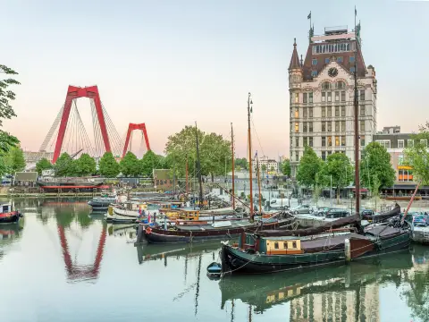 قم بزيارة متحف كيجك-كوبس الشهير (بيوت المكعبات) والميناء القديم التاريخي ، حيث يمزج التصميم الحديث مع التراث البحري لمدينة روتردام.