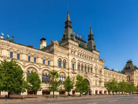 يقع متجر GUM متعدد الأقسام في الساحة الحمراء بموسكو. وهو مركز تسوق تاريخي بُني في أواخر القرن التاسع عشر. يجمع تصميمه المعماري بين عناصر عصر النهضة الحديثة والعناصر الروسية التقليدية. يتميز ديكوره الداخلي بقباب زجاجية وأرضيات رخامية رائعة، مما يوفر للمتسوقين تجربة فريدة.
